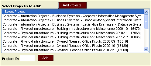 adjustment for. To select multiple projects hold down the 'Ctrl' button while